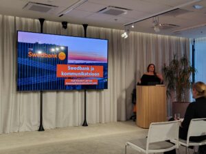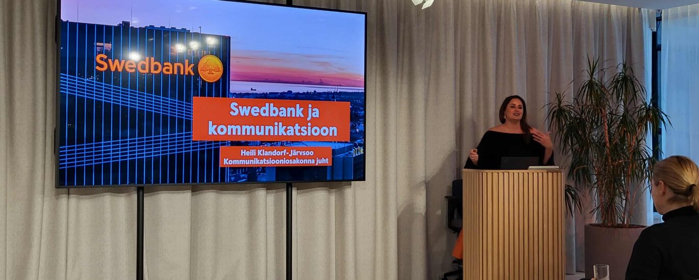 Kommunikatsioooniosakonna juht Heili Klandorf-Järvsoo tutvustas oma osakonna tööd ja saime teada, et Swedbanki “turuosa” meedias on ligi kolmandik.