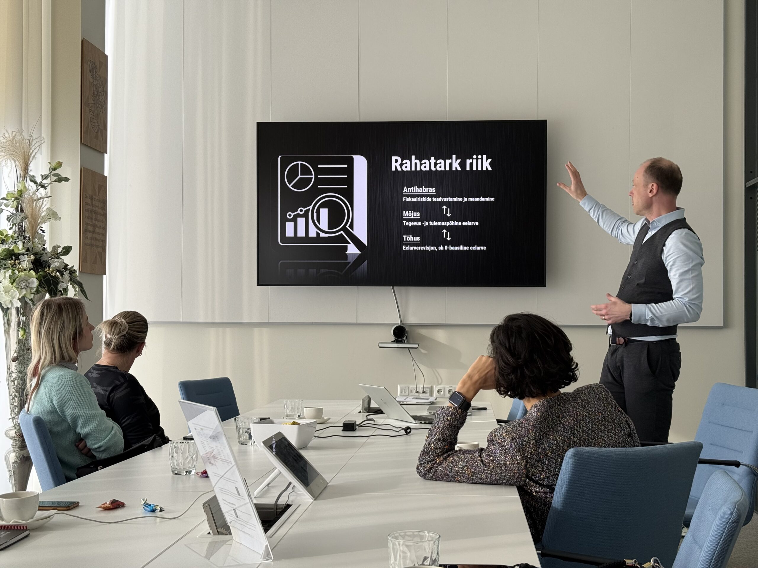 EPRA märtsikuu külaskäik viis meid majja, kus asub riigi rahakott – Rahandusministeeriumisse. Meid võtsid vastu kommunikatsiooniosakonna juht Elina Kink ja eelarvepoliitika asekantsler Sven Kirsipuu, kelle eestvedamisel võeti Eestis kasutusele tegevuspõhine riigieelarve (TERE).